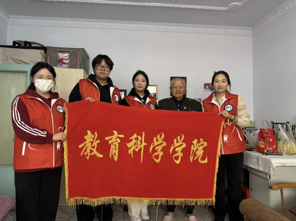 为纪念中国人民抗日战争暨世界反法西斯战争胜利80周年,9月17日下午,教育科学学院开展了一场意义非凡的慰问活动。志愿者们带着崇高敬意与深切关怀,走进抗美援朝老兵家中,以实际行动向这个“最可爱的人”致以最诚挚的敬意。