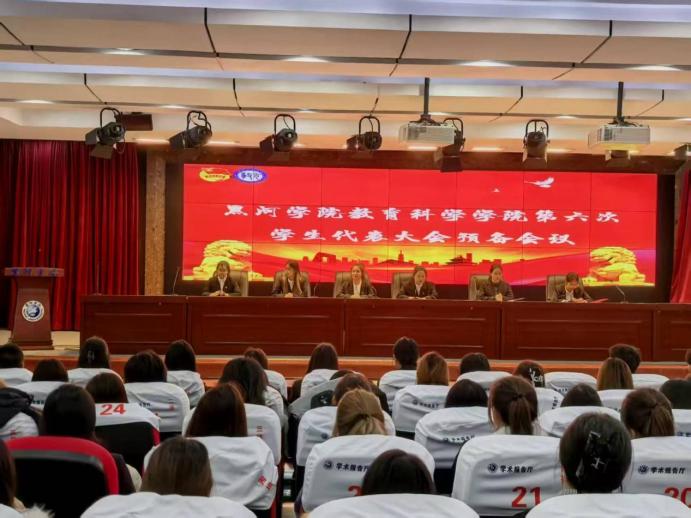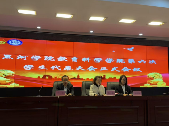 大会听取了黑河学院教育科学学院第十九届学生会《工作报告》和《黑河学院教育科学学院章程》。审议并通过《教育科学学院第六次学生代表大会选举办法(草案)》、教育科学学院第六届学生会委员会委员候选人、教育科学学院第二十届学生会主席团、主席候选人名单。选举并宣布教育科学学院第二十届学生会主席团及执行主席。