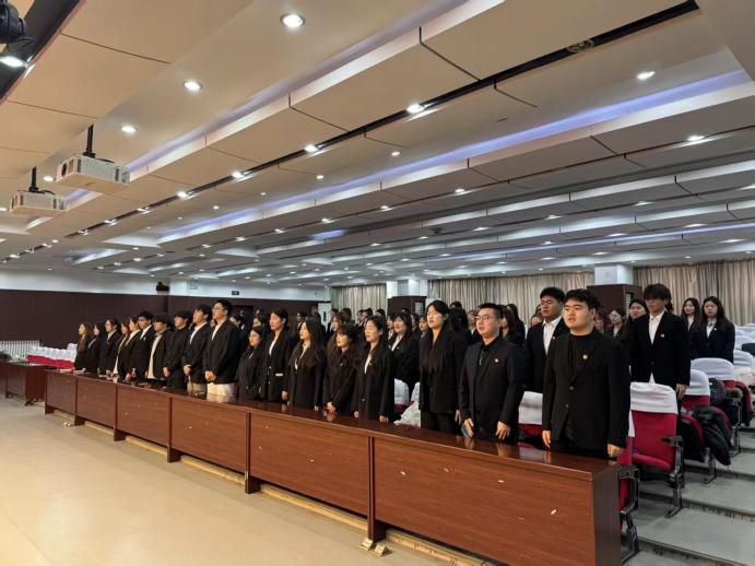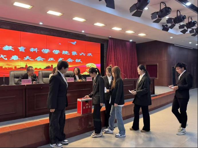 2025年11月5日,教育科学学院在求知楼报告厅召开第六次学生代表大会。教育科学学院党总支书记张航、辅导员王丰、孙啟迪及100名学生代表出席会议。会议在嘹亮雄壮的国歌中拉开帷幕。