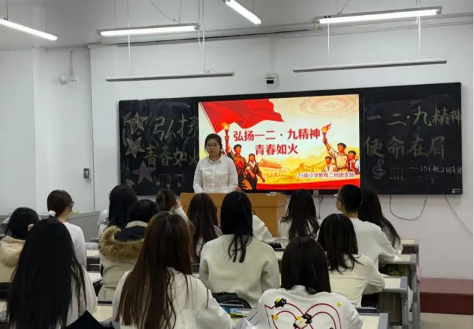 为积极引导广大青年重温红色历史、传承“一二·九”精神,切实将青春理想融入强国建设与民族复兴实践,教育科学学院于12月4日扎实开展“弘扬一二·九精神,青春如火,使命在肩”主题团日活动,旨在激发团员青年的爱国热情与责任担当。