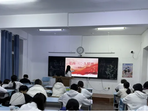 活动伊始,团支书播放“一二·九”运动纪实短片,并且带领全体成员了解、把握运动背景与历史意义。随后,通过红色文献集体研读、历史影像集中展播、革命先辈事迹分享等形式,引导青年深刻体悟彼时青年学子为民族独立、国家存亡挺身而出的无畏担当,清晰建立当代青年与革命先辈之间一脉相承的精神纽带,进一步夯实爱国爱党思想根基。