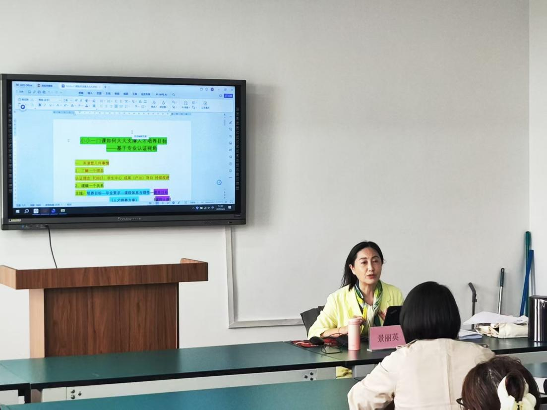 景丽英院长以“小小的一门课如何发挥对人才培养目标大大的支撑作用”为主题,以OBE理念为指导,从认证角度出发,系统地梳理了课程目标、毕业要求、培养目标三者之间关系,详细阐述了课程目标应如何支撑毕业要求和培养目标的达成,并以实际案例展示了应如何设计课程目标,如何在大纲中体现课程目标的达成。指导会上,景丽英院长就课程建设及教学督导等相关问题与我院教师进行亲切交流互动。