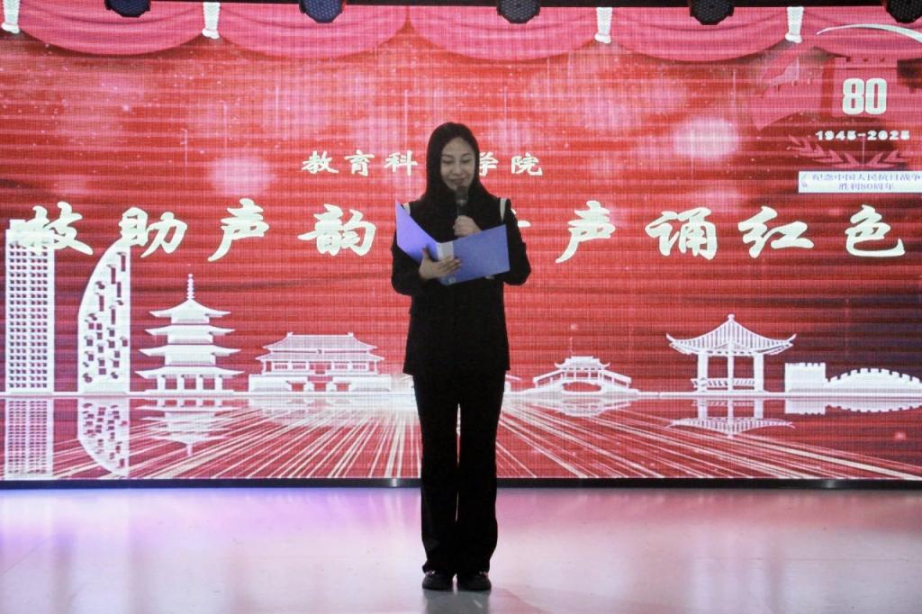 专业评审赋能活动升华。教育科学学院领导与专业教师组成的评审委员会秉持“公平、公开、公正”原则,对参赛作品红色内涵的传递、普通话水准及科技助演效果进行综合点评打分。学院领导逐一针对本次活动进行经验复盘与总结,提炼可复用的实践成果,为后续开展红色文化传播类活动提供坚实的参考依据,最终对优秀选手予以表彰。