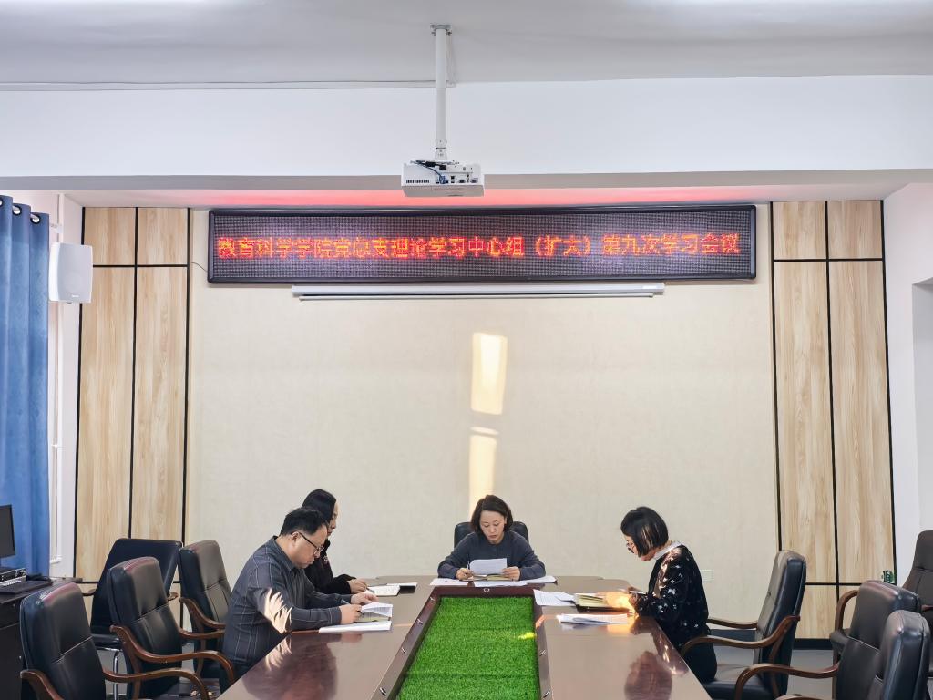 12月11日,教育科学学院党总支在行知楼会议室召开理论学习中心组(扩大)第九次理论学习会议。学院党总支书记张航主持会议,学院班子成员参加了会议。