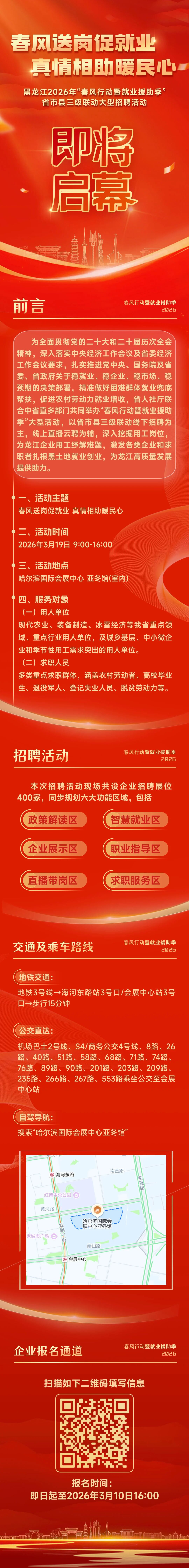 黑龙江省市县三级联动大型招聘会将于3月19日在哈尔滨国际会展中心亚冬馆(室内)举行,请学院组织学生自行参加招聘会,学校带队教师李长庚13154568686,韩东权18845073891.现场学生有问题可以联系老师。
